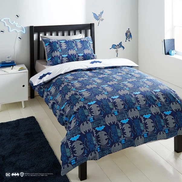 Introducing our heroic Batman Reversible Grey Duvet and Pillowcase Set, perfect for all caped crusaders out there! Crafted from a soft and durable poly-cotton blend, this easy-care set is designed to withstand all the action-packed adventures that come with being a superhero.