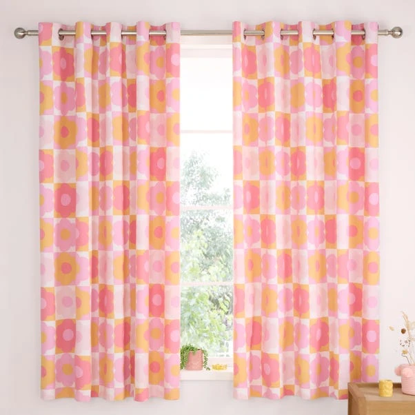 Infuse your child’s room with vibrant retro charm through these daisy-patterned curtains. The bold floral design brings a fun, nostalgic feel to the space, while the fully reversible feature offers a chic tile pattern on the other side, allowing for easy style updates. Made from a sturdy polycotton blend, these curtains are built to last through many seasons of fun.