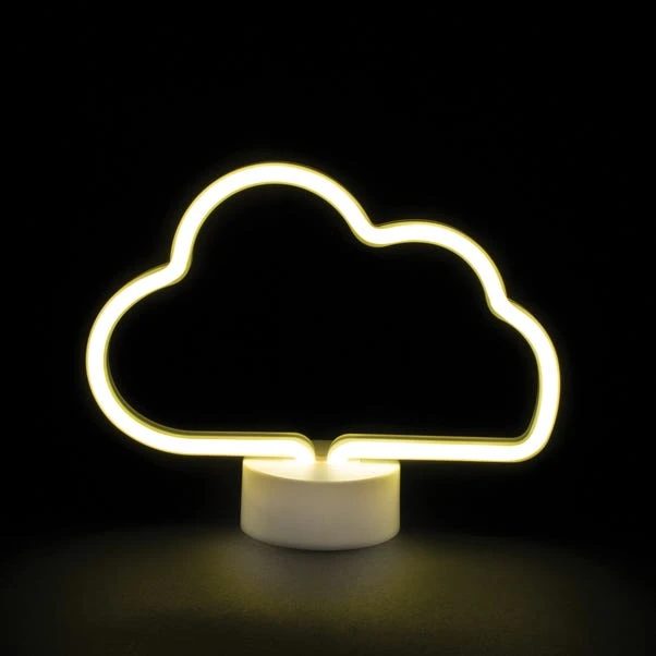 Light up the room with this cool cloud shaped lamp with LED bulbs that shine a bright neon white. Requiring 3 x AA batteries (not included).