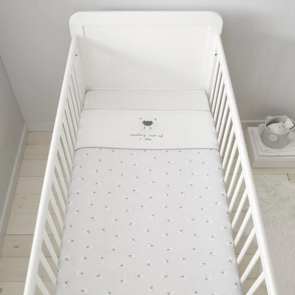 Featuring an adorable Counting Sheep design, this coverless cot quilt is a delightful addition to your little one’s bedding. With a 4 tog rating and polyester fibre filling, it provides lightweight warmth while staying soft and snug. Made from 100% cotton, the quilt is naturally breathable and easy to maintain, eliminating the need for a separate duvet cover. Plus, its reversible design offers two charming patterns in one, adding extra versatility and fun to your baby’s bed.
