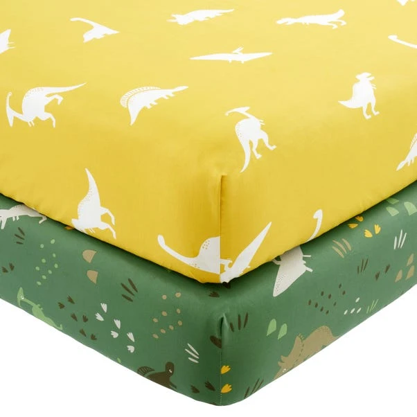 Featuring a dinosaur adventure design, these dinosaur fitted sheets are perfect for making your little one’s bed totally “roar-some”. Easy to care for, these sheets have been crafted from a soft polycotton material that can be fully machine washed. Give you little one a full dinosaur adventure by pairing these fitted sheets with the coordinating duvet cover and pillowcase set.