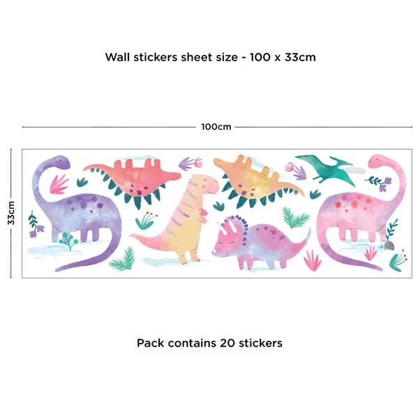 Great for adding that finishing touch to a kids bedroom or nursery wall, this pack of adorable dinosaur wall stickers are perfect for bringing a bright and colourful addition to any room. With a range of fun and creative designs, these self-adhesive stickers are fully removable and wipe clean.