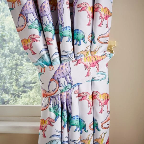 Embark on a journey of discovery with The Dinosaurs Gallery Eyelet Curtains, where prehistoric wonders will excite any Dinosaur enthusiast. Finished in a colourful prehistoric print, these curtains usher in the serenity of sleep with their blackout lining. Effortlessly hung by an eyelet header, these blackout curtains will prevent any unwanted light sneaking in. Complete the set with matching items, creating a cohesive prehistoric vibe in the bedroom.