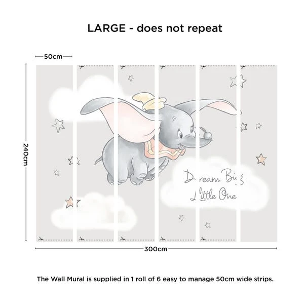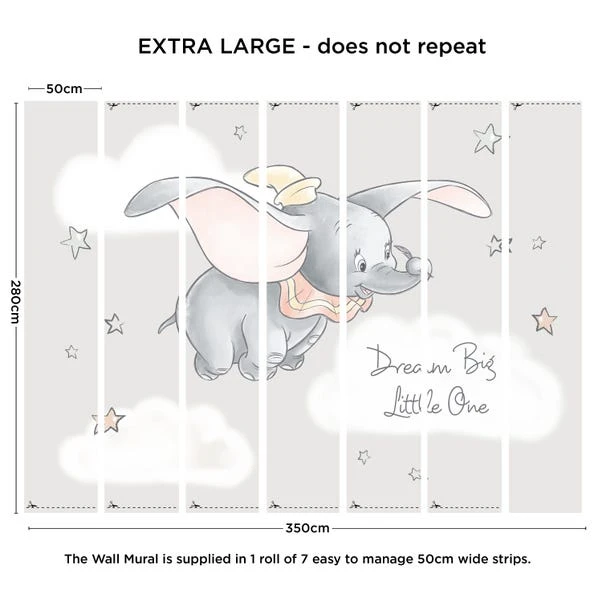 This Disney Dumbo wall mural is an ideal finishing touch for a kids bedroom or nursery. Easy to apply, the high quality Mural will look great when used to decorate a bedroom. Matching bedding, accessories and blankets are also available, so you can transform your babies room into an adorable Dumbo Wonderland.