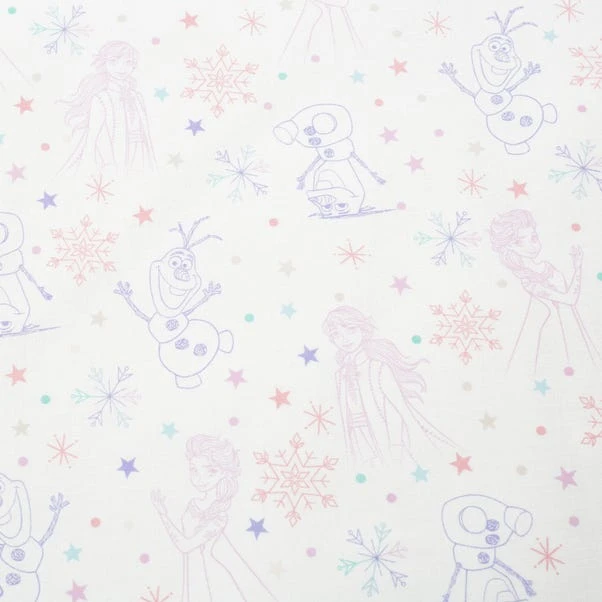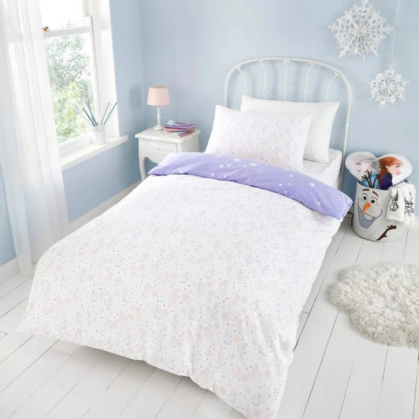 Featuring some of your favourite Frozen characters, this duvet cover set is a fun way to dress your little one’s bed. A pastel Olaf print decorates the reverse of this duvet cover set. Crafted from a polycotton material, the set is easy to care for and is fully machine washable. The duvet cover set has been finished with a button closure which helps secure the cover around the duvet whilst in use. Pair the duvet cover with the matching fitted sheet for a coordinated look.