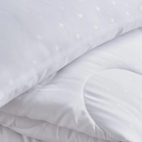 Ensure your little one sleeps comfortably with this lightweight and snug 4 tog cot bed duvet and pillowcase set, expertly crafted by Fogarty. Featuring a soft polyester fibre filling, it provides just the right amount of coziness while remaining cool and breathable. Designed with an embossed star pattern for a touch of charm, this durable duvet set is easy to care for—fully machine washable and safe to tumble dry on a high heat setting. Perfect for toddlers aged 12 months and over, it offers both style and practicality for peaceful nights. Made in the UK with quality and care in mind.