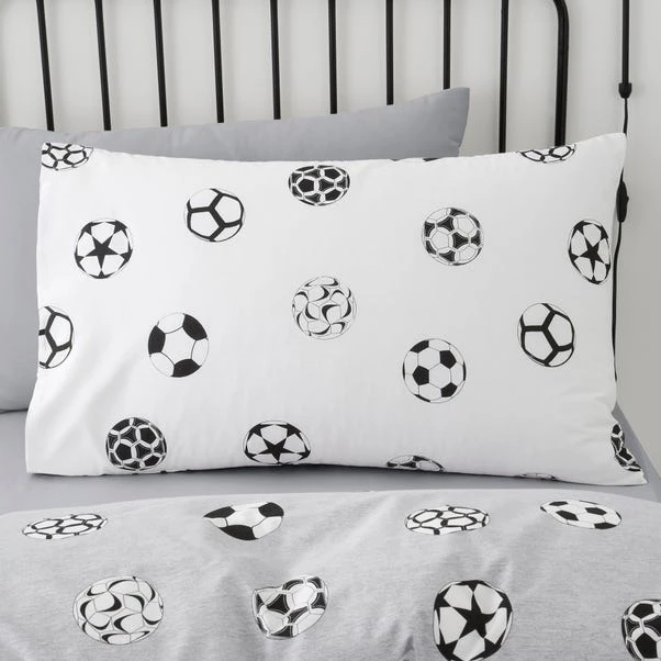 Perfect for football lovers, this reversible football bedding set has two fun and sporty designs your child can choose from. In a grey and white colourway, this bedding set would compliment any bedroom beautifully. Crafted from polycotton this bedding is soft, durable, and machine washable. Other coordinating bedding accessories are also available.
