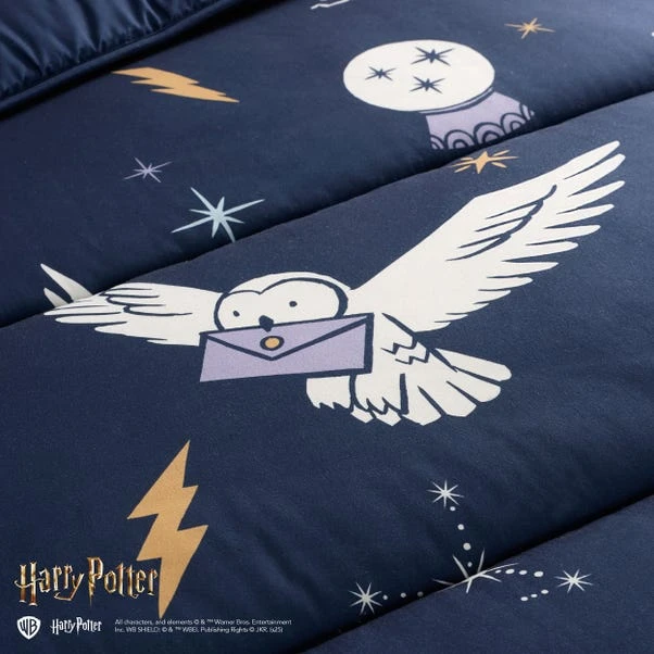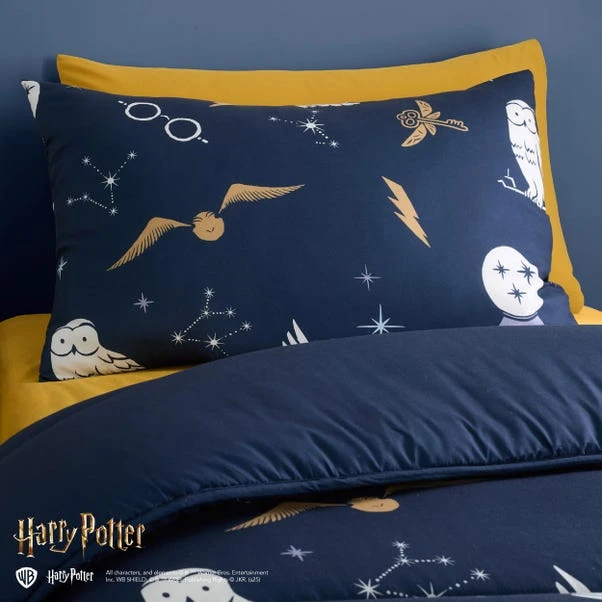 Perfect for Harry Potter lovers, this cosy coverless duvet and pillowcase set features a fun Harry Potter-inspired design; a warm and comfortable 7.5 tog duvet; includes a standard pillowcase and reusable carry bag; and boasts a lovely soft-hand feel.