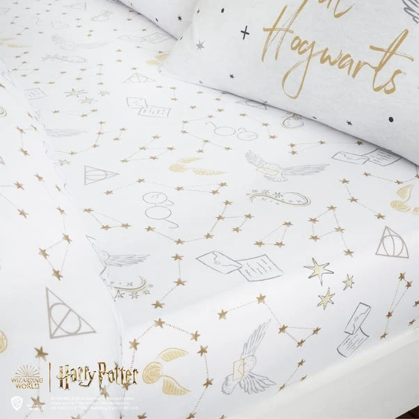Calling at all the Harry Potter fans, add some magic and fun to your bedding with this Hogwarts fitted sheet. It features a fun Harry Potter scattered print all over. Crafted from a soft blend of polyester and cotton material, this set is easy to care for and is fully machine washable. Good things come to those who coordinate, so why not pair this fitted sheet with the matching bedding sets available to purchase separately?