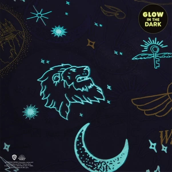 Add a touch of magic to your child’s bedroom with this glow in the dark duvet cover and pillowcase set. Featuring Hogwarts this bedding set is fully reversible so you can choose between two fun designs. Made from polycotton this bedding set is soft, durable, and machine washable. Other coordinating Harry Potter accessories are also available.