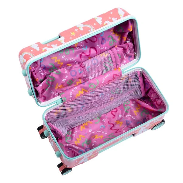 Make travel fun and hassle-free with this Trunkryder ride-on suitcase, designed especially for little adventurers. Featuring an ergonomic handle and footrests, it’s easy for kids to tow themselves or hop on for a comfortable ride when little legs get tired. The twin-panel zip opening allows children to access toys and essentials on the go, making long journeys more enjoyable. Parents will love the dual-purpose handle, offering an effortless towing option when needed. With a lightweight yet spacious 41L capacity, it’s the perfect cabin-friendly companion for holidays and weekends away. Built to last with a 10-year guarantee, this suitcase is as practical as it is fun.