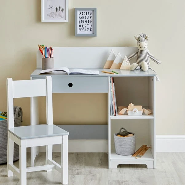 The perfect little addition to your home, this desk and chair set comes complete with everything your kids would need for studying, reading and drawing. This design features a strong wooden desk structure that provides ample storage space, with a built-in drawer and storage unit to organise the kids books and stationery. Complete with a matching wooden chair with sturdy legs, perfect for your kids to comfortably sit on. With its gorgeous colourway, this desk and chair set would complement any kids bedroom or playroom.