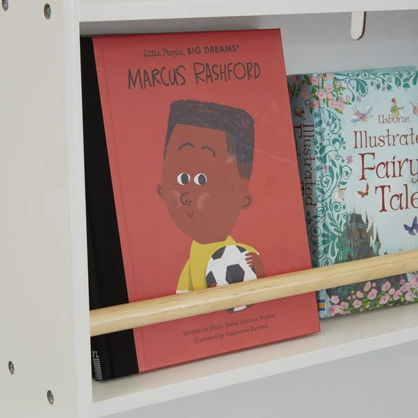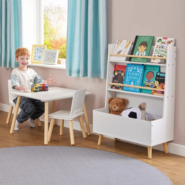 This dual-function unit features two bookshelves with solid wood retaining rails for face-on display of books, which is a great way to encourage your child to read more. The deep base is perfect for storing cuddly toys, games, and other gadgets, ensuring everything has its place.