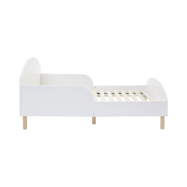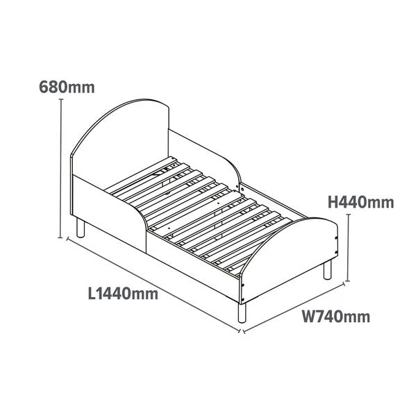 This frame is the perfect first big bed for your little one transitioning from their cot. Designed with an enclosed top frame, a modern rounded headboard, and elegant neutral colors, it fits seamlessly into any décor. Built low to the ground for easy access, this bed prioritises child safety with raised protective sides to prevent accidental rollouts.