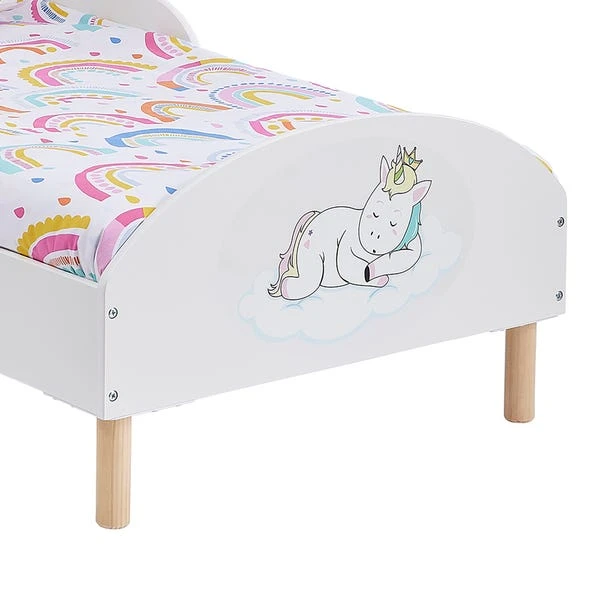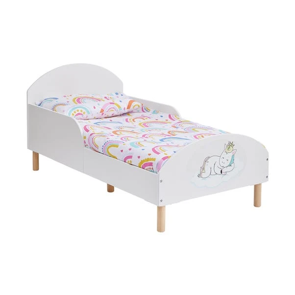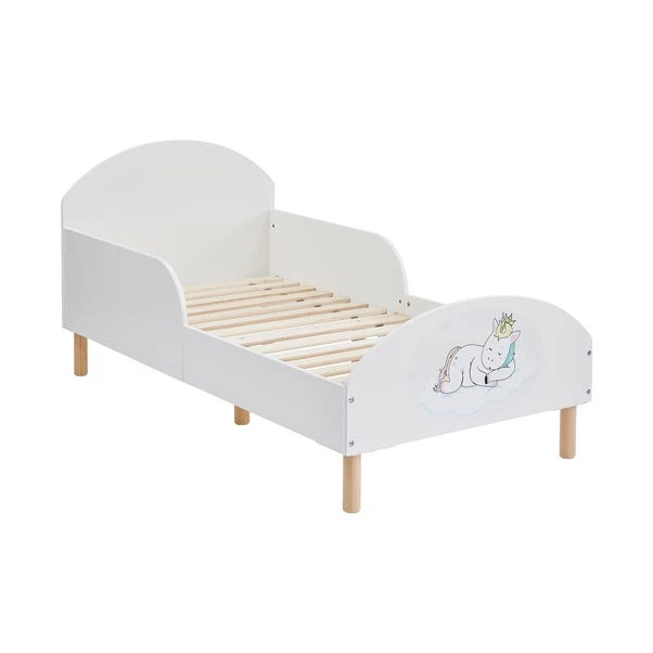Perfect for transitioning from a cot to a big bed, this bed features an enclosed top frame, a modern rounded headboard, and elegant neutral colors. Designed for child safety, it is built low to the ground for easy access and includes raised protective sides to prevent accidental roll outs.