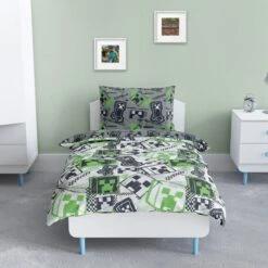 Immerse yourself in the Minecraft universe with our Official Minecraft Coverless Duvet Set. This innovative bedding set, featuring the iconic Minecraft design, includes a 10.5 Tog duvet that provides warmth year-round. Its coverless design means no more struggling with duvet covers – simply wash the entire duvet and matching pillowcase. Made from high-quality, durable materials, this set includes a reusable carry bag for easy transport. It’s a stylish and functional addition to any Minecraft fan’s room.