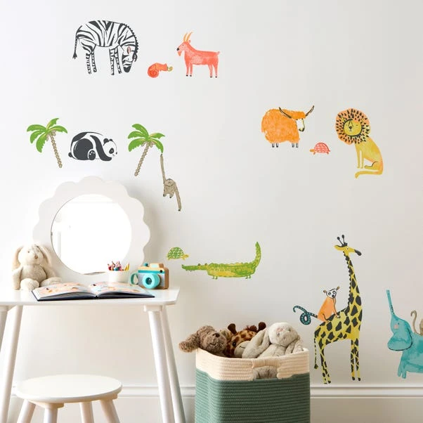 Featuring a variety of multicoloured wild animals and trees, the My World wall stickers are an ideal finishing touch for a kids bedroom or nursery. Easy to apply, the high quality wall stickers will look great when used to decorate a bedroom. Self adhesive and fully removable.