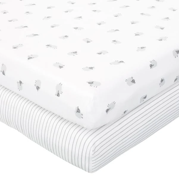 Boasting a super adorable Counting Sheep spot design, this set of 2 fitted sheets are an ideal staple for your little one’s bedding. Beautifully crafted from 100% cotton with a 144 thread count, these fitted sheets are cosy and soft and are machine washable. This set is available in a bedding sizes and other coordinating bedding is also available.