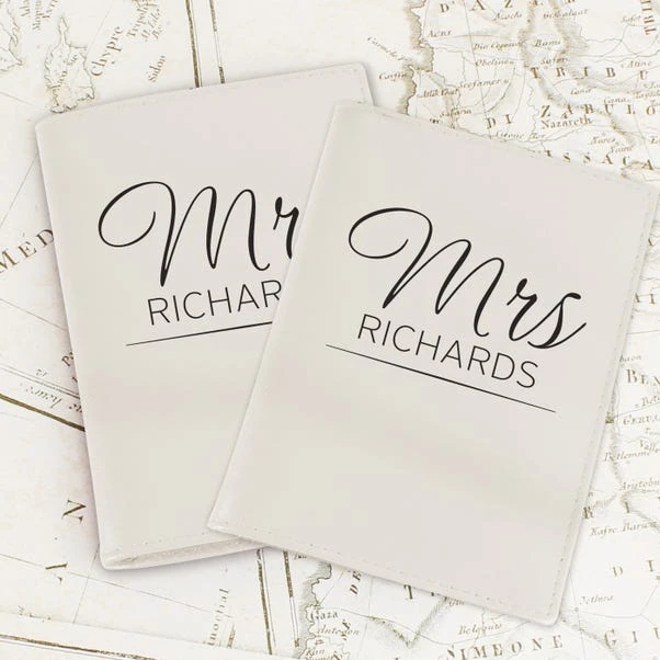 Travel in classic style with these personalised cream passport holders. Engraved with a surname, these leather holders offer both elegance and practicality, making them an ideal gift for weddings, birthdays, or anniversaries.