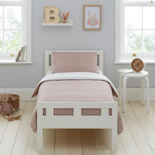 Boasting a simple yet stylish spotted design, this reversible duvet cover and pillowcase set is a beautiful addition to your little one’s bedroom. Beautifully crafted from 100% jersey cotton, this bedding set is super soft, durable, and machine washable. Other coordinating accessories are also available.