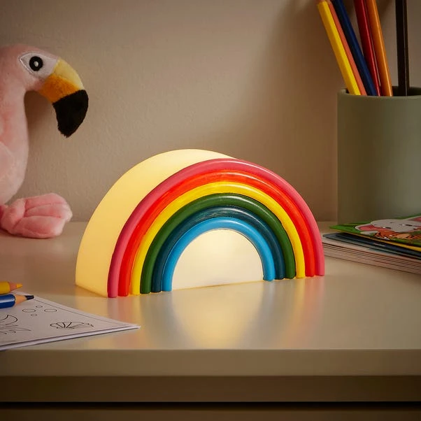 Bring a burst of colour to your child’s room with the Rainbow LED Night Light. Its charming rainbow design adds a touch of whimsy, whilst the warm white glow from the single LED creates a cosy ambience perfect for bedtime. Ideal for your little one’s room or nursery, this night light will soothe them to sleep with its gentle illumination.