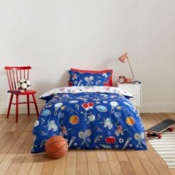 Whether you’re a fan of football, basketball, or any other sport, this duvet cover brings the thrill and excitement of the game right into your sleep sanctuary. Made from high-quality, easy-care poly-cotton blend, this set is not just a feast for your eyes but also a delight to maintain. The reversible design allows you to switch up the look whenever you desire, and the button closure ensures your duvet stays securely tucked in, providing a cosy and uninterrupted sleep experience.