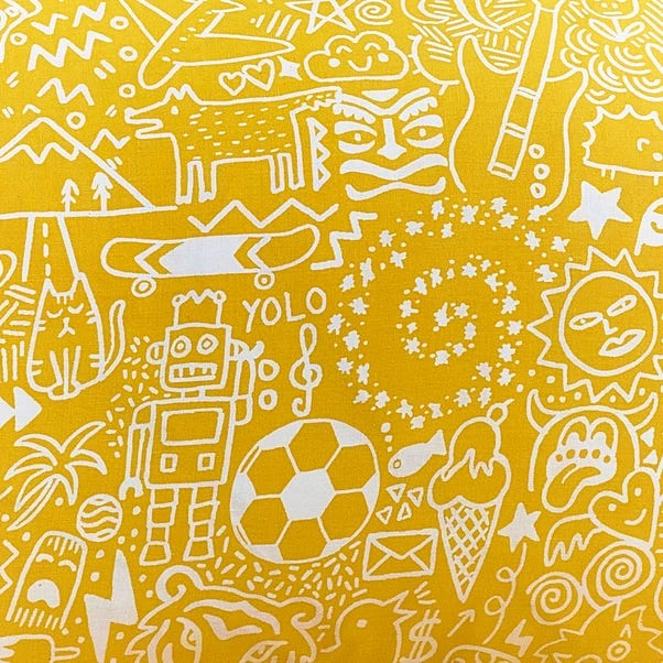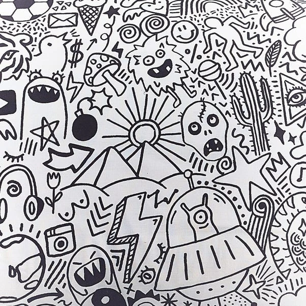 Boasting an array of exciting notebook doodles, this duvet cover and pillowcase set is perfect for your teenager. The set is fully reversible and features a yellow colourway of the doodle design.. Being made from crisp polycotton, this duvet is both soft and durable. A clear button closure has been added for easy duvet removal. The set is fully machine washable and includes matching pillowcases!