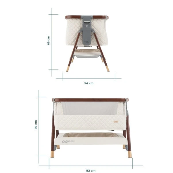 Enjoy the convenience of adjusting the height of the CoZee Luxe Bedside Crib with six different positions. Alleviate reflux symptoms by positioning one side higher, and utilize the practical storage shelf for essentials. The crib easily converts into a standalone option, all backed by the Tutti Bambini 3 Year Guarantee for a worry-free nursery experience.