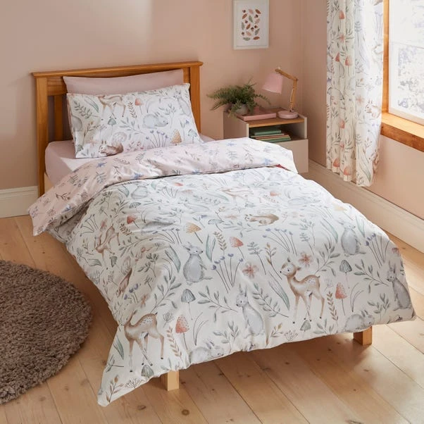 Welcoming the adorable Woodland Reversible Pink Duvet and Pillowcase Set, a dreamy heaven for your little ones to snuggle up in! Bursting with hand-drawn woodland charm, this bedding set brings a sprinkle of enchantment to the bedroom.